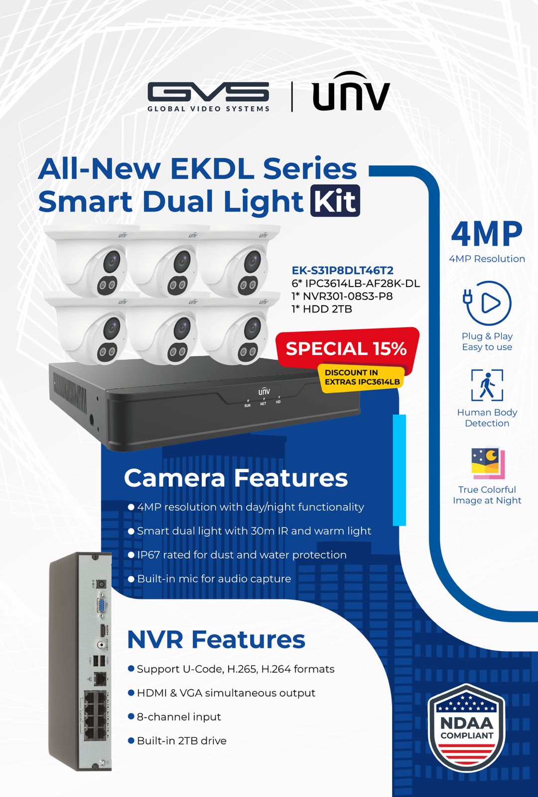 - IP KIT 24/7 Color Turret IP Security Camera, NVR301-08S3-P8 x 1 with 2TB x 1 with IPC3614LB-AF28K-DL x 6, NDAA IP KIT 24/7 Color Turret IP Security Camera, NVR301-08S3-P8 x 1 with 2TB x 1 with IPC3614LB-AF28K-DL x 6, NDAA